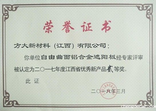 近日,江西省工信委在全省工业和信息化技术创新工作会公布了2017年度优秀新产品获奖名单,taptap点点信誉全资子公司chengdecar新材料(江西)有限公司的“青花瓷铝单板”、“自由曲面铝合金遮阳板”两项新产品获得了2017年江西省优秀新产品二等奖。